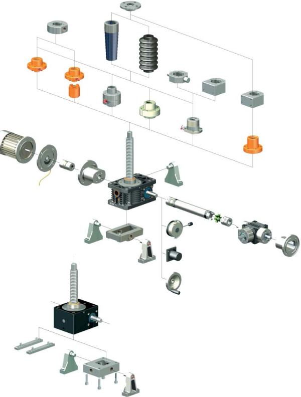 "S"=verze s nerotujícím závitovým vřetenem - šnek pohání šnekové kolo s integrovanou maticí